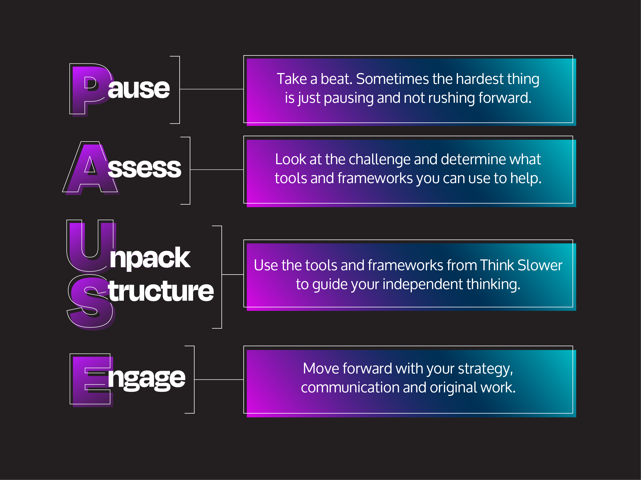 Follow a systematic approach — Pause, Assess, Unpack Structure, Engage — to think with discipline and create better work.
